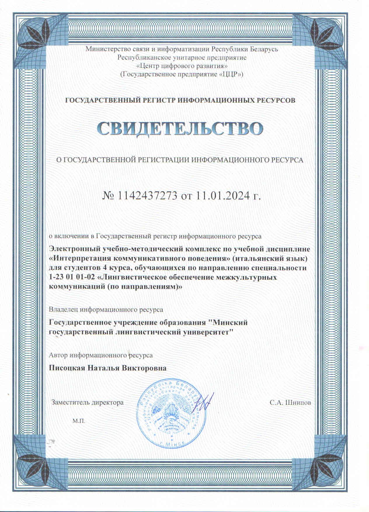 Название: | Электронный учебно-методический комплекс по учебной дисциплине «Интерпретация коммуникативного поведения» (итальянский язык) |
