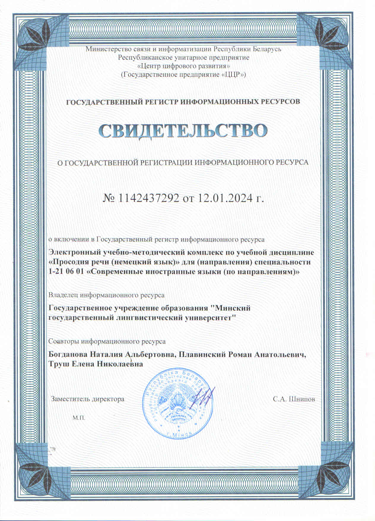 Библиографическое описание: Электронный учебно-методический комплекс по учебной дисциплине «Просодия речи (немецкий язык)» для (направления) специальности 1-21 06 01 «Современные иностранные языки (по направлениям)» / сост.: Н. А. Богданова, Р. А. Плавинский, Е. Н. Труш ; Минский гос. лингвист. ун-т. – Минск, 2023. – Режим доступа: http://e-lib.mslu.by/handle/edoc/14004.